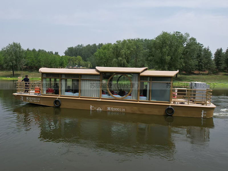 标准配置 | 铝合金船体及上装、玻璃钢顶棚、铝合金门窗、船舶专用地板、前后系船绳4根、救生衣16件、救生圈2个、照明灯具1套 |