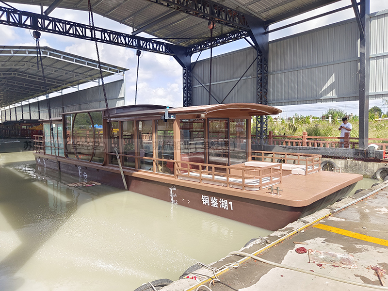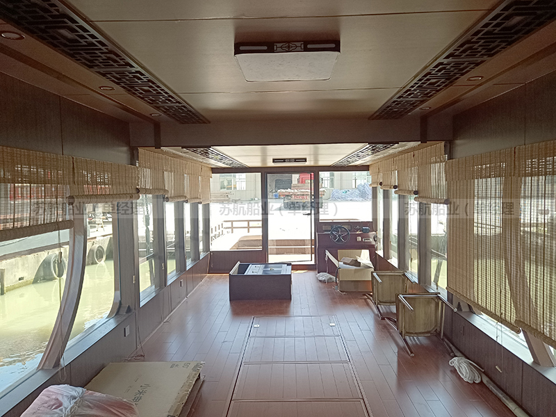 标准配置 | 木质船底外包13层高分子防护层、木质船顶外包防护层、铝合金门窗、船舶专用地板、前后系船绳4根、救生衣26件、救生圈2个、照明灯具1套 |