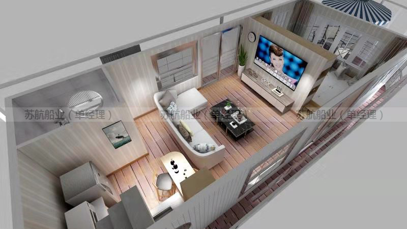 水上宾馆船_木质房船