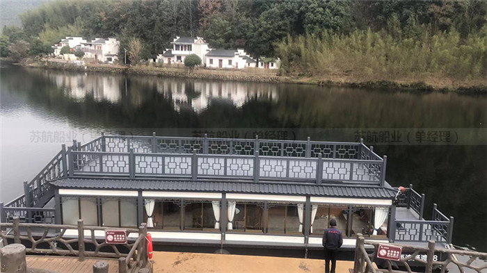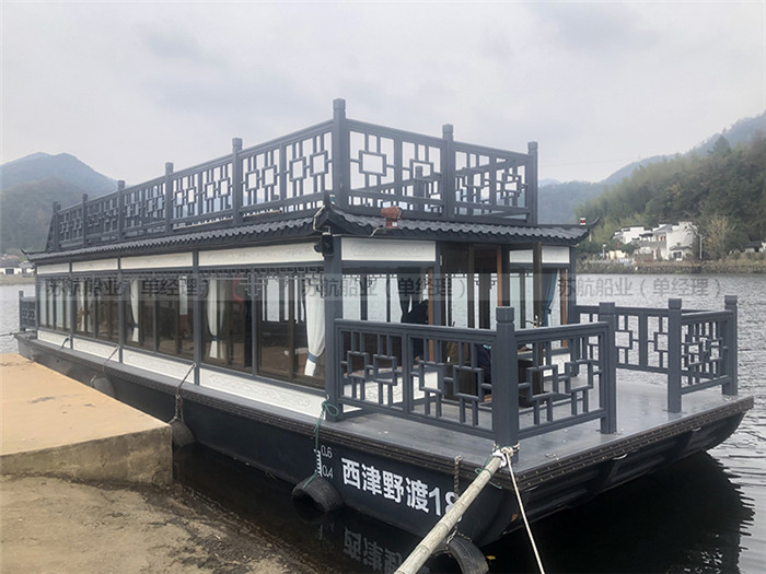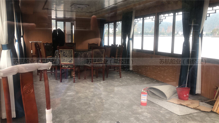 标准配置 | 木质船底外包12层高分子防护层、船顶外包防护层、上装欧雅木雕实木门窗或铝合金门窗(二选一)、船舶专用地板、前后系船绳4根、救生衣32件、救生圈2个、304不锈钢系船环6个、照明灯具1套 |